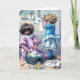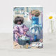 Trabalhos de arte bonitos do vintage de duas meninas que lavam a roupa das suas bonecas e que penduram a para secar