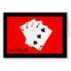 Uma fotografia de quatro cartas de jogar - um 2 De Corações, 2 De Espadas, 3 De Ouros e 3 De Paus - é o assunto do meu "Turning 10 É um Grande Negócio!" cartão de aniversário. As cartas, que totalizam 10 pontos, aparecem bem sobre um fundo vermelho brilhante.