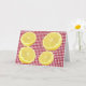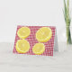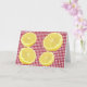 O cartão de saudação de encorajamento perfeito para que as pessoas saibam que estão a pensar neles. Às vezes a vida te dá limões. Aguente firme e faça limonada. Limões fatiados brilhantes no cheque de gingham vermelho.