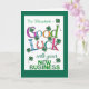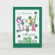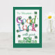 Uma Boa Sorte com o seu cartão de saudação do New Business para personalizar, com letras coloridas brilhantes, trevas de quatro folhas e ferradura para sorte! Um design digital baseado em texto de Judy Adamson, você pode adicionar o nome do destinatário à frente e mudar a mensagem dentro, se desejar.