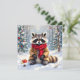 Um cartão de Natal super fofo que você pode personalizar com sua própria mensagem personalizada. Isto tem uma ilustração do estilo aquarela de um guaxinim festivo sentado em uma floresta de neve branca durante um dia de inverno com pano de fundo de pinheiros decorados em férias.