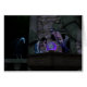 Duas curiosas fadas de alça-coroa estão inspecionando uma órbita roxa brilhante enquanto seu amigo corvo assiste.