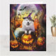 Cartão Feiticeira de Halloween e Abóbora Samoyed Samoyed