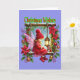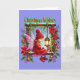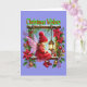 Uma fada bonita embrulhada quente no natal, roupas vermelhas, senta-se na viúva e nos sonhos dos dias de inverno, uma lanterna brilhante acende a escuridão e um pequeno pinto vermelho mantém sua companhia. Fantasia de Natal