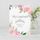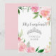 Este lindo cartão Feliz Cumpleaños de flores rosa apresenta lindas flores de aquarela e folhas verdes acima de uma coroa prateada brilhante. Um cartão de aniversário feminino e delicado para o 15º aniversário da sua filha. Peônias femininas e delicadas criam uma linda borda em torno da mensagem elegante de Quinceañera.