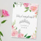 Este lindo cartão Feliz Cumpleaños floral rosa apresenta belas flores de aquarela e folhas verdes acima de um tiaro prateado cintilante. Um cartão de aniversário feminino e delicado para o 15º aniversário da sua adolescente. Peônias alegres e femininas criam uma borda encantadora em torno da mensagem elegante de Quinceañera.