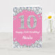 Feliz 10º Aniversário, Pink e Silver Glitter Card com nome personalizado. Para mais personalização, clique no botão "Personalizar" e use nossa ferramenta de design para modificar este modelo.