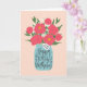 Um jarro de mason cheio de um belo grupo de peonias e flores brancas com as palavras escritas manualmente 'For my madrasta' na etiqueta e 'Happy 100th Birthday' no jarro de mason. O cartão de aniversário perfeito para celebrar o aniversário da madrasta! © Ness Nordberg