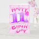 Feliz cartão de aniversário de 11. Cor: Principalmente pinks e roxas. Feliz aniversário, que este dia seja sempre um dia especial para se lembrar.