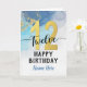 Cartão Feliz 12 Aniversário Aquarela Azul e Ouro