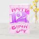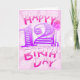 Feliz cartão de aniversário de 12. Cor: Principalmente pinks e roxas. Feliz aniversário, que este dia seja sempre um dia especial para se lembrar.