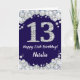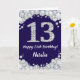 Cartão Feliz 13 Birthday Marinho Azul e Silver Glitter