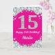 Cartão Feliz 15 de aniversário, rosa quente e brilho prat