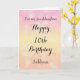 Uma bela e feliz carta neta de 16 anos, que você pode facilmente personalizar com o nome dela. Este cartão de aniversário da neta tem um design com fundo em uma rosa claro, amarelo-claro e laranja-claro. Você também pode personalizar a mensagem de aniversário dentro do cartão, se quiser.