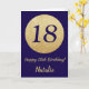 Cartão Feliz 18º Marinho de aniversário, brilhante Dourad
