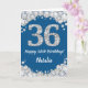 Cartão Feliz 36.º Aniversário, Azul e Silver Glitter Card