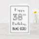 A frente deste elegante deco de arte dos anos 30 do 1920 de aniversário inspirou o design de cartão de saudação com tema de aniversário com a mensagem "Feliz 38º aniversário" e um nome de destinatário personalizado. O número "38º" na frente tem um aspecto com rico, e há também uma borda com várias linhas. O dentro tem uma mensagem de saudação de aniversário personalizada, ou talvez pudesse ser apagado e deixado vazio se uma mensagem fosse escrita manualmente. Um cartão de cumprimentos de aniversário personalizado como este pode ser uma maneira divertida de entregar alguns desejos de aniversário a alguém que está celebrando seus trinta e oito anos. [~Z0000641]