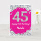 Cartão Feliz 45º aniversário, rosa quente e brilho pratea