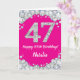 Cartão Feliz 47.º aniversário, rosa quente e brilho prate