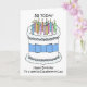 Uma carta divertida para celebrar o 50º aniversário de qualquer nora especial. Um bolo de cartoon coberto por velas multicoloridas e com um arco azul ao seu redor.