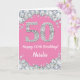 Cartão Feliz 50º aniversário, rosa e prata