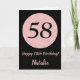 Cartão Feliz 58º aniversário, preto e Rosa rosa Dourado
