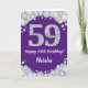 Cartão Feliz 59.º aniversário, Roxo e Placa Leve Prateada