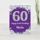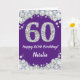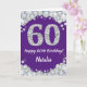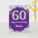 Cartão Feliz 60.º aniversário, Roxo e Placa Leve Prateada