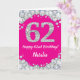 Cartão Feliz 62º Aniversário Brilho Rosa e Prata