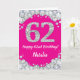 Cartão Feliz 62º Aniversário Brilho Rosa e Prata