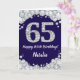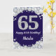 Cartão Feliz 65º aniversário Marinho Azul e Silver Glitte
