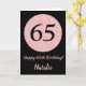Cartão Feliz 65º aniversário, preto e Rosa, rosa Dourado