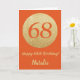 Cartão Feliz 68.º aniversário Laranja e Dourada carta com