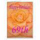 Um cartão de saudação de aniversário com uma imagem de uma bela flor amarela, de cor rosa, em cada uma das suas pétalas. A carta tem a massagem "Happy 69th Birthday" em letras cor-de-rosa. Todo o trabalho e imagens de martinspixs, voltem logo para ver novos cartões de saudação.