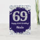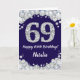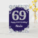 Cartão Feliz 69º aniversário Marinho Azul e Silver Glitte