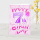 Feliz cartão de aniversário de 7. Cor: Principalmente pinks e roxas. Feliz aniversário, que este dia seja sempre um dia especial para se lembrar.