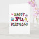 Feliz aniversário de 7. Design de aniversário engraçado e fofo com um lindo ursinho de pelúcia segurando um presente e um lápis engraçado escrevendo os desejos de aniversário. Uma combinação perfeita para roupas, camisas e acessórios.