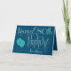 Um design com letras decorativas em cores escuras para cartões de aniversários 80. Feliz Aniversário é definido num guião elegante a azul, e a idade está num estilo de coordenação em chalé mole, juntamente com o nome do vosso destinatário, num fundo azul. Você pode mudar a dentro da mensagem para sua própria saudação. Os balões de chá cintilantes e falhos acrescentam o toque perfeito na frente! O mesmo fundo azul de cor continua no dentro.