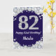 Cartão Feliz 82º aniversário Marinho Azul e Silver Glitte