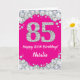 Cartão Feliz 85.º aniversário, rosa quente e brilho prate