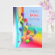 Um cartão de aniversário brilhante com balões coloridos e o texto "Feliz aniversário de 90" na frente e no verso dentro.