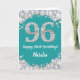 Cartão Feliz 96.º aniversário do Teal e do Silver Glitter