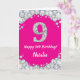 Cartão Feliz 9.º Aniversário Rosa Quente e Silver Glitter
