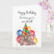 Feliz Aniversário Engraçado Sobre o humor do Hill Card. Coruja velha rabugenta com um aniversário e balões. Dentro texto: você sabe que está sobre a colina quando se lembra de ir um dia inteiro sem tirar fotos.