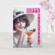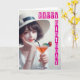 Uma senhora muito bonita na década de 1930 vestida com Feliz Aniversário na frente do cartão