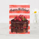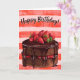 Um chocolate e um bolo de morango de aparência deliciosa com desejos de Feliz Aniversário.