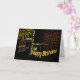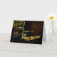 Todo mundo adora um aniversário, então mande este cartão para expressar seus desejos. Palavras coloridas centradas na celebração de um aniversário e fogos de artifício no pano de fundo fazem disto um cartão adequado para qualquer um.