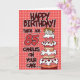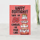 Um cartão de aniversário específico à idade do divertimento que caracteriza um bolo grande de b-dia em um fundo da xadrez para enviar a às sua amigos, família e amadas!