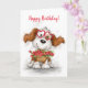 Cartão Feliz Aniversário, Cachorro Bonito Segurando Cesta