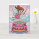 Aprecie uma garota especial com este cartão de aniversário encantador, com uma doce fada fluindo sobre um bolo de vela, caminhando e brilhando por toda parte. Perfeito para pequenos sonhadores e amantes de contos de fadas, este design cômico captura a maravilha dos desejos de aniversário que se tornam realidade.